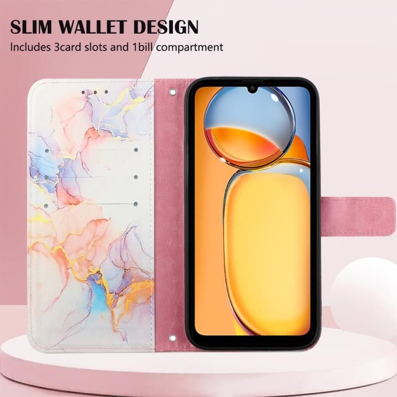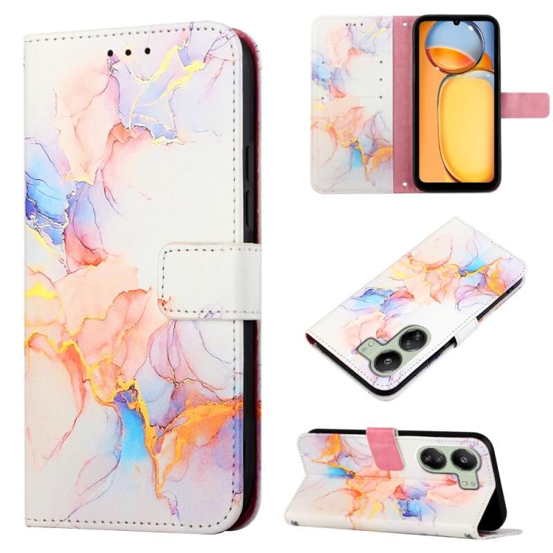 Θήκη τηλεφώνου από δέρμα με σχέδιο μάρμαρου για Xiaomi Redmi 13C PT003 (Χρυσό Ρόδι)