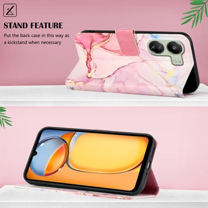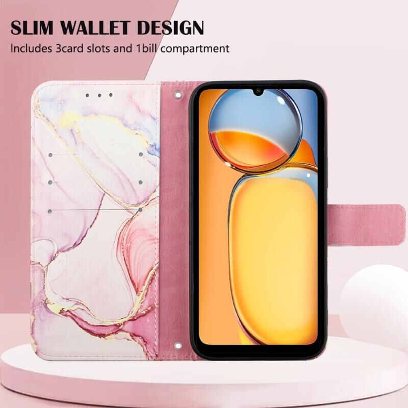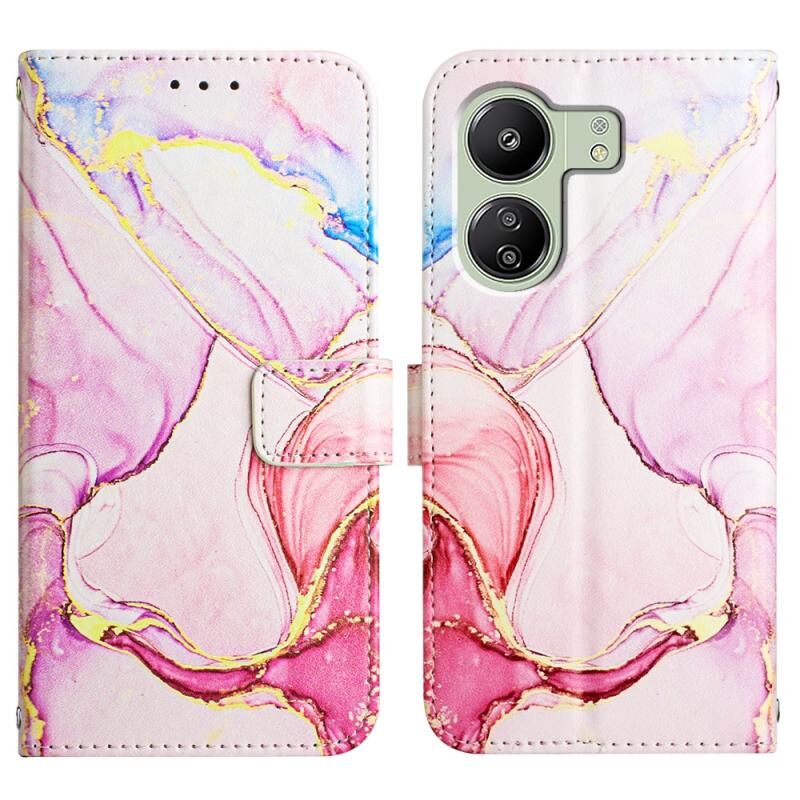 Θήκη τηλεφώνου από δέρμα με σχέδιο μάρμαρου για Xiaomi Redmi 13C PT003 (Χρυσό Ρόδι)