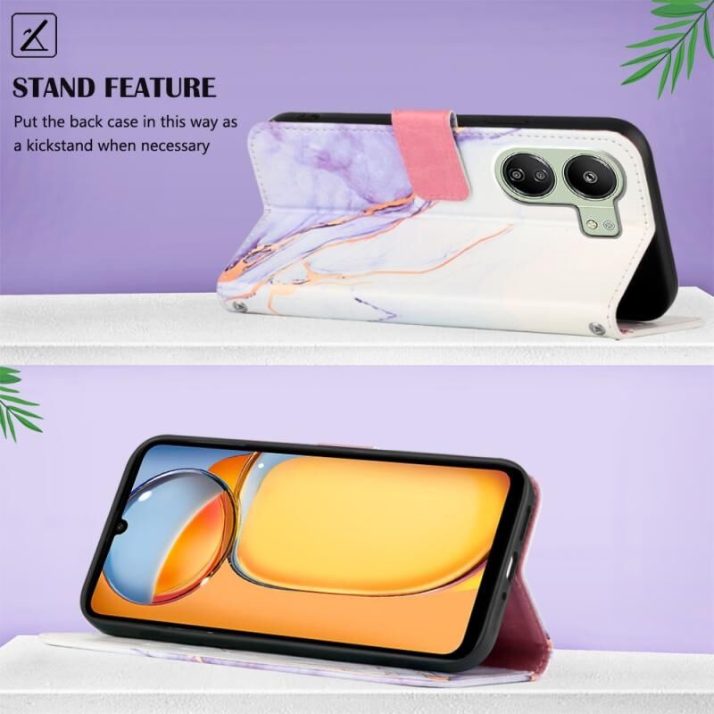 Θήκη τηλεφώνου από δέρμα με σχέδιο μάρμαρου για Xiaomi Redmi 13C PT003 (Χρυσό Ρόδι)