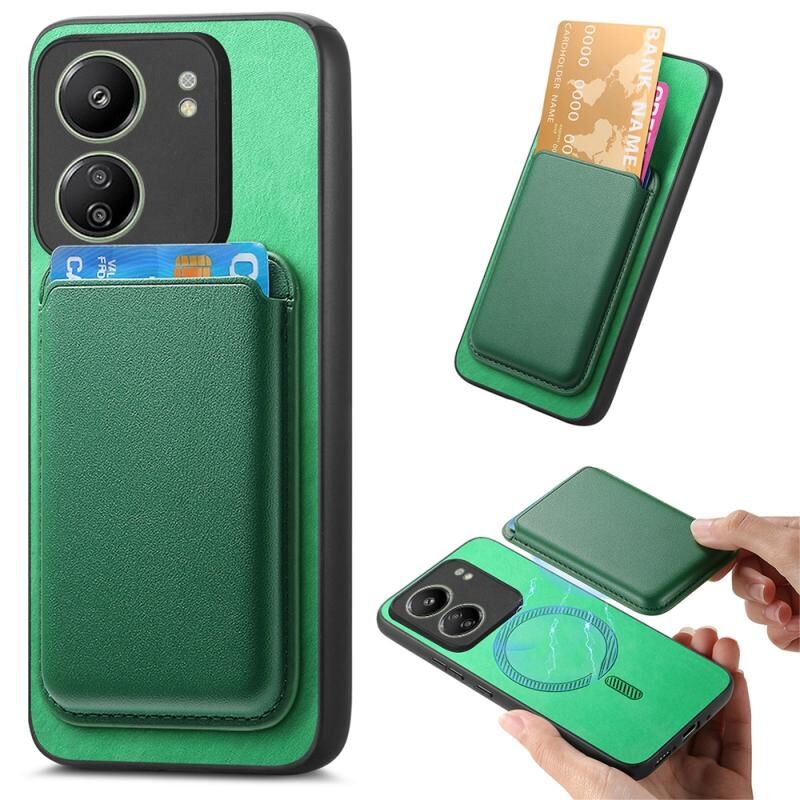Για Xiaomi Redmi 13C Ρετρό Θήκη Κάρτας Magsafe, Μαγνητική Θήκη Πίσω Καπακιού (πράσινο)