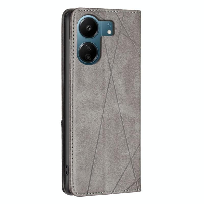Για Xiaomi Redmi 13C Rhombus υφή μαγνητική δερμάτινη θήκη τηλεφώνου (γκρι)