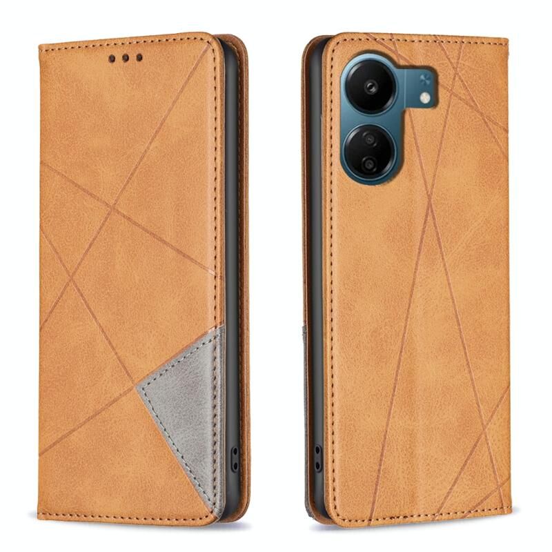 Για Xiaomi Redmi 13C Rhombus υφή μαγνητική δερμάτινη θήκη τηλεφώνου (κίτρινο)