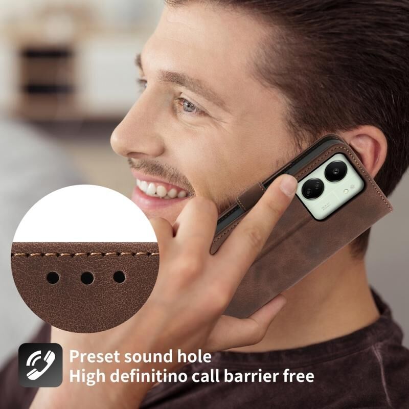 Για Xiaomi Redmi 13C Skin-feel λουλούδια ανάγλυφο πορτοφόλι δερμάτινη θήκη τηλεφώνου (καφέ)