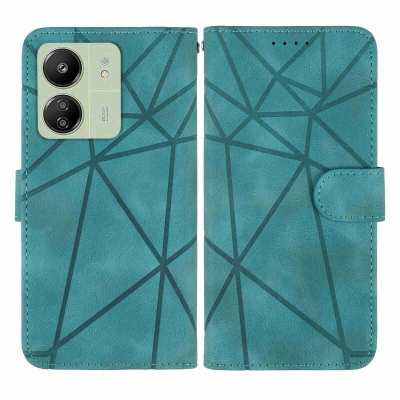 Για Xiaomi Redmi 13C Skin Feel γεωμετρικές γραμμές δερμάτινη θήκη τηλεφώνου (πράσινο)