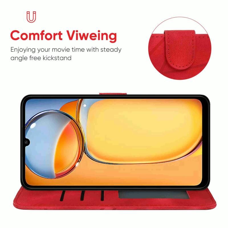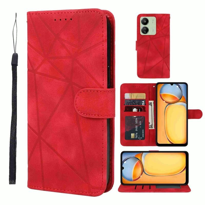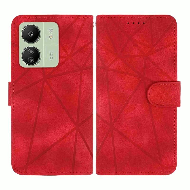 Για Xiaomi Redmi 13C Skin Feel γεωμετρικές γραμμές δερμάτινη θήκη τηλεφώνου (κόκκινο)