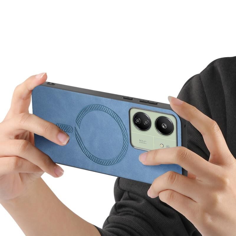 Θήκη κινητού τηλεφώνου για Xiaomi Redmi 13C, μονόχρωμη, ρετρό, με μαγνητική σύνδεση (Magsafe), από PU δέρμα (Μπλε)