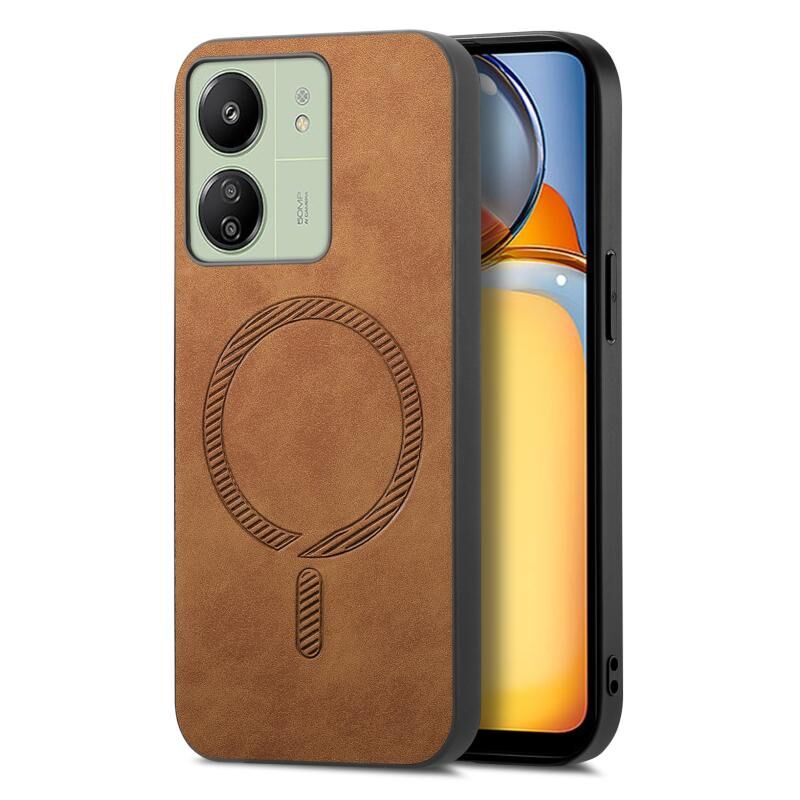 Θήκη κινητού τηλεφώνου για Xiaomi Redmi 13C, μονόχρωμη, ρετρό, με μαγνητική σύνδεση (Magsafe), από PU δέρμα (Καφέ)