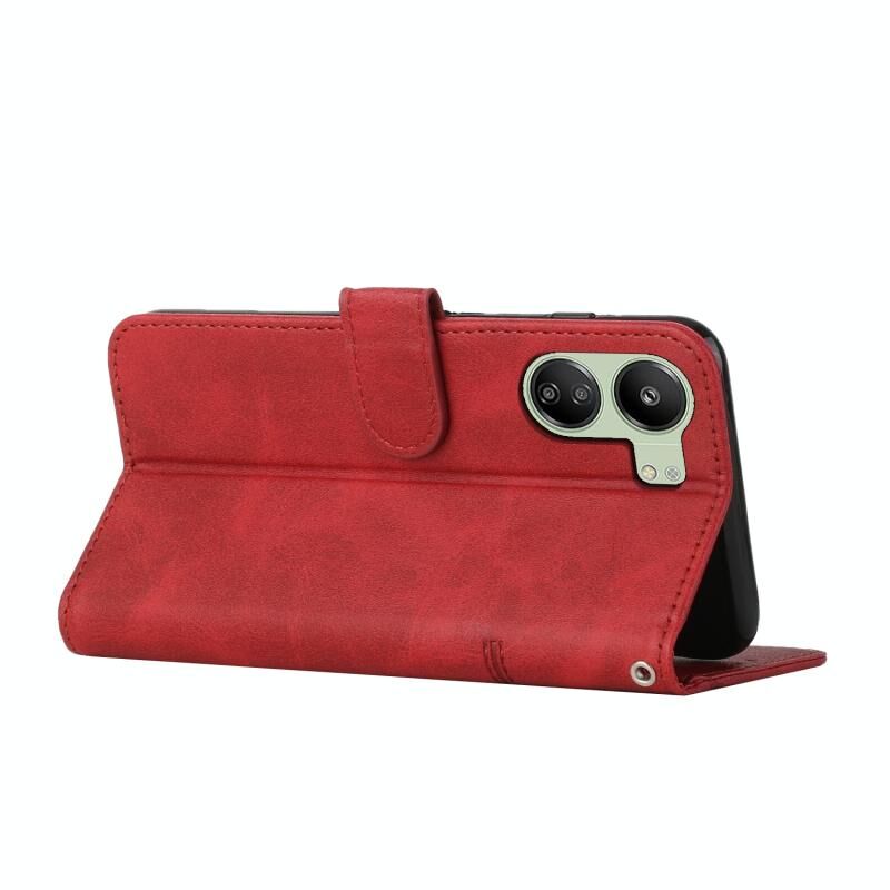 Για Xiaomi Redmi 13C ραφή μοσχάρι υφή πόρπη δερμάτινη θήκη τηλεφώνου (κόκκινο)