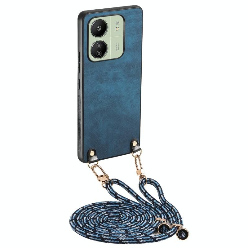 Για Xiaomi Redmi 13C εκλεκτής ποιότητας δέρμα PC πίσω κάλυψη υπόθεση τηλεφώνου με λουράκι σταυρού (μπλε)