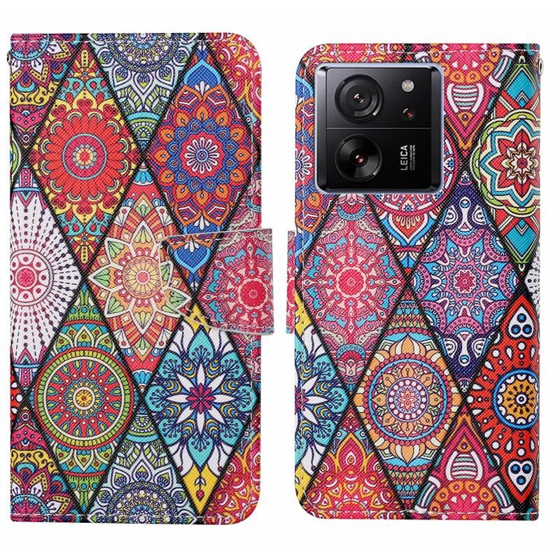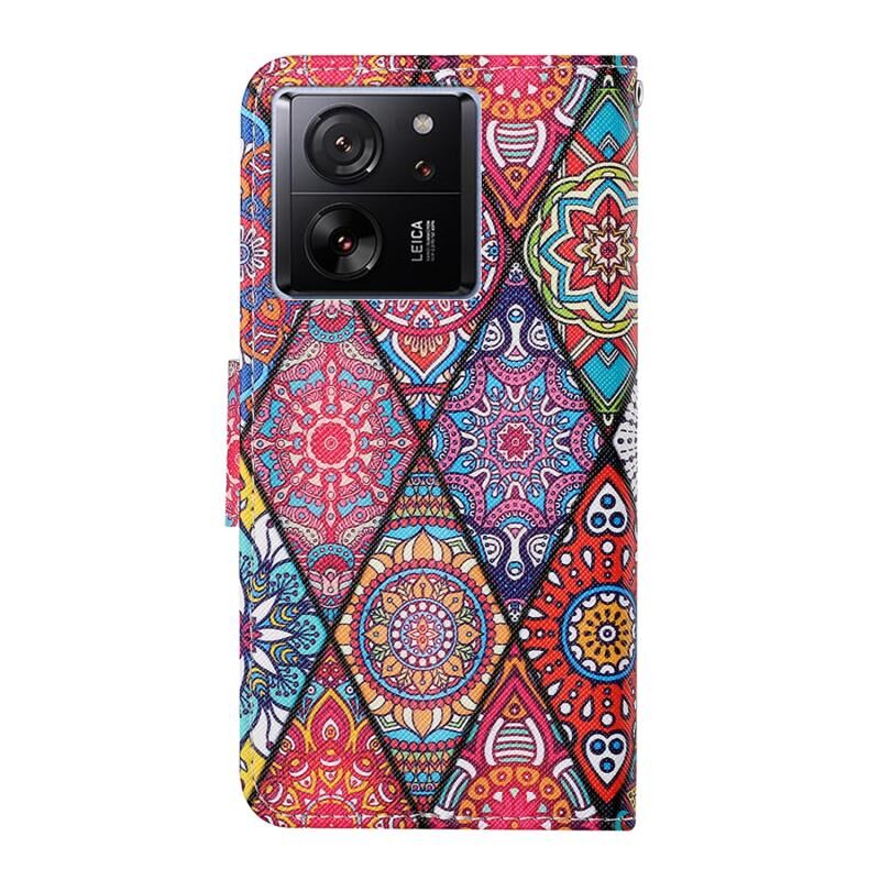 Θήκη τηλεφώνου δερμάτινη με πολύχρωμο σχέδιο για Xiaomi Redmi 13T (Κόκκινο)