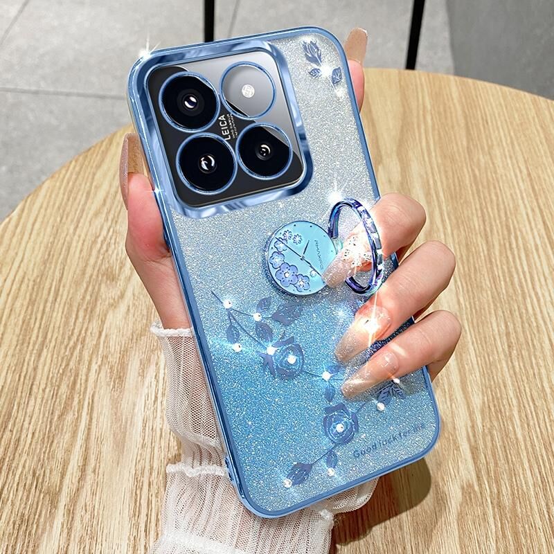 For Xiaomi Redmi 14C 4G Gradient Glitter Immortal Flower Ring All-inclusive Phone Case(Blue)