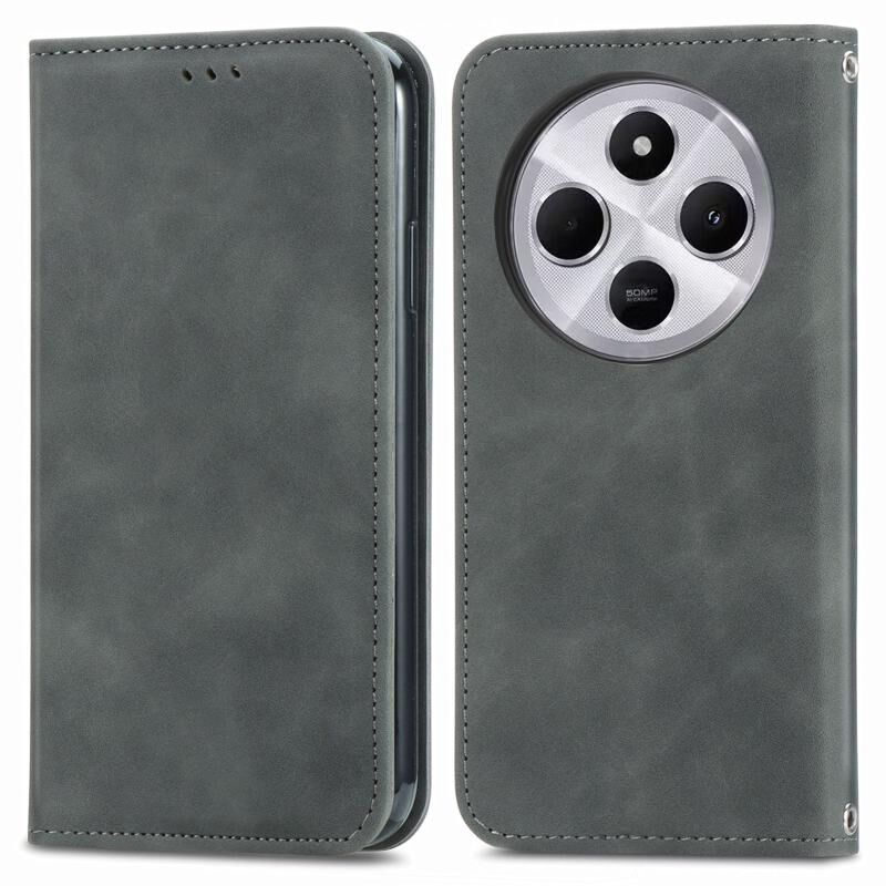 Για Xiaomi Redmi 14C Ρετρό δέρμα αίσθηση μαγνητική Flip δέρμα τηλέφωνο υπόθεση (γκρι)