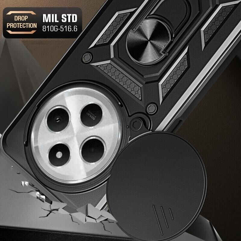 Θήκη τηλεφώνου υβριδική TPU/PC για Xiaomi Redmi 14R / 14C / Poco C75 με σχεδιασμό ολισθαίνουσας κάμερας (Μέντα Πράσινο)