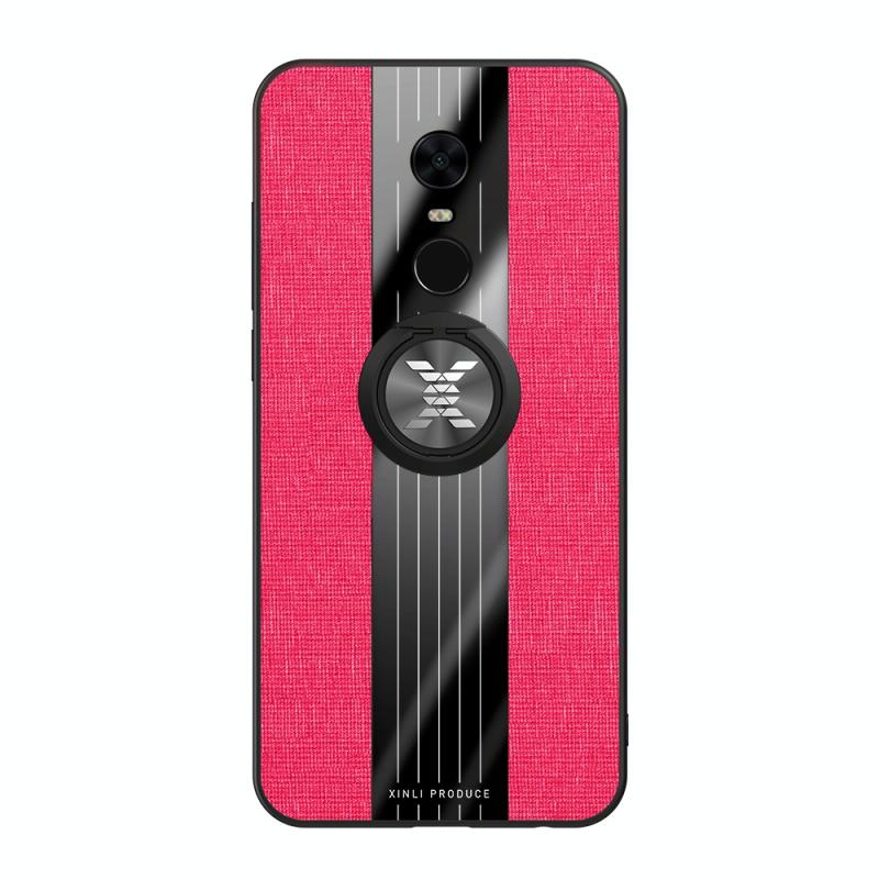 Θήκη προστασίας TPU με υφή ραφής υφάσματος και αντικραδασμική προστασία για Xiaomi Redmi 5 Plus XINLI με δακτύλιο στήριξης (Κόκκινο) (XINLI)