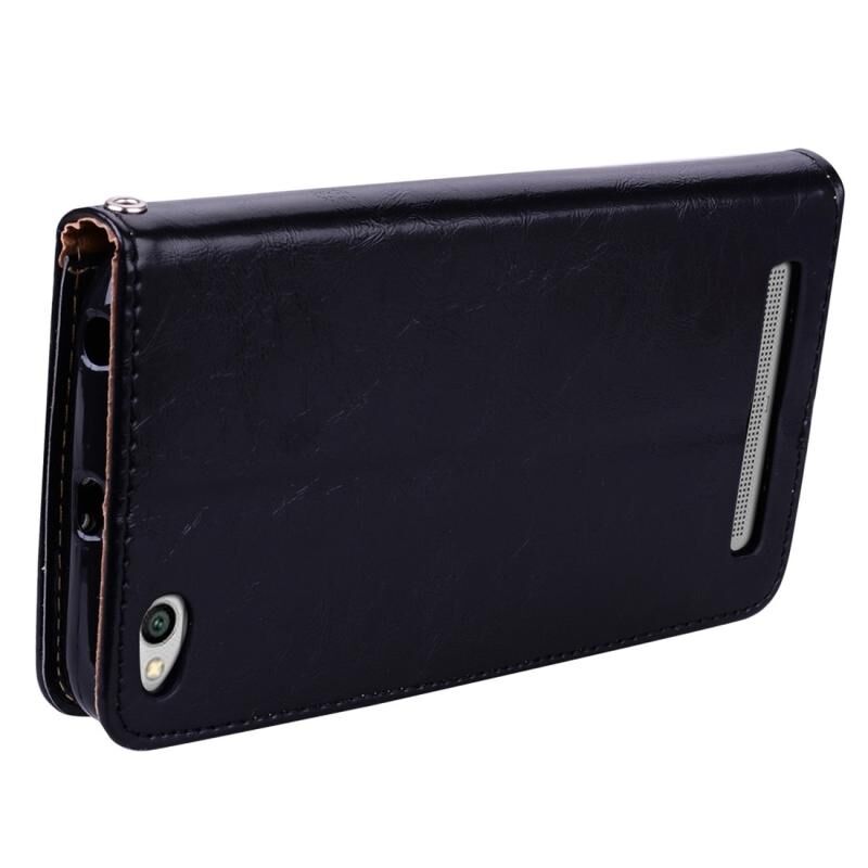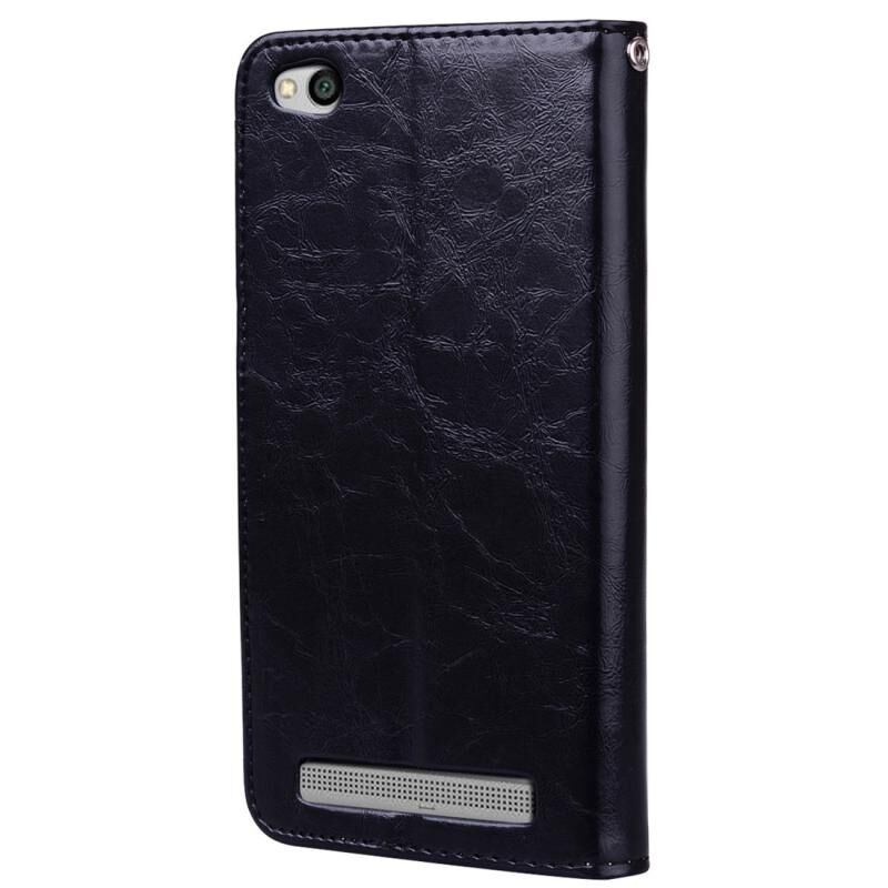 Θήκη τύπου βιβλιαρίου από δέρμα με υφή λαδιού/κεριού για Xiaomi Redmi 5A, επαγγελματικού στυλ, με βάση στήριξης, υποδοχές καρτών, θήκη πορτοφολιού και κορδόνι (Μαύρο)