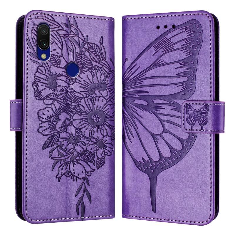Για Xiaomi Redmi 7 ανάγλυφη πεταλούδα δερμάτινη θήκη τηλεφώνου (μωβ)