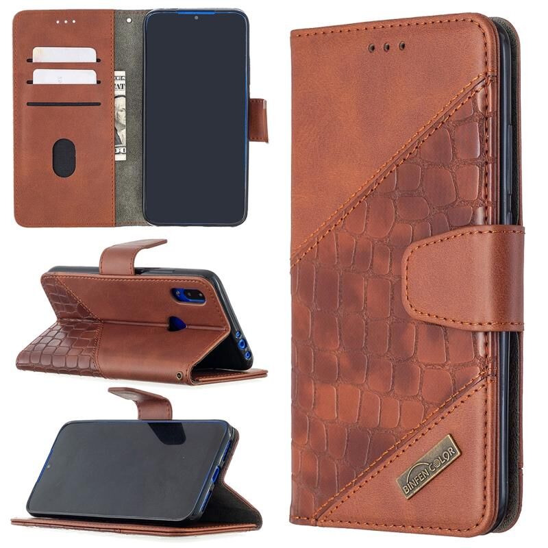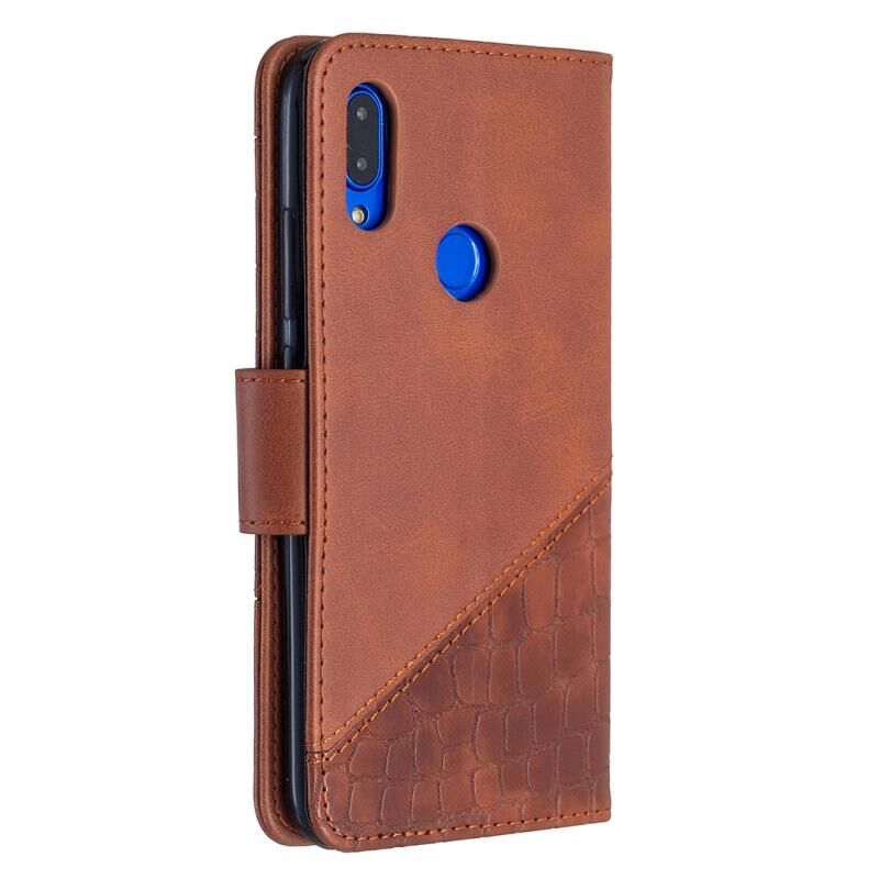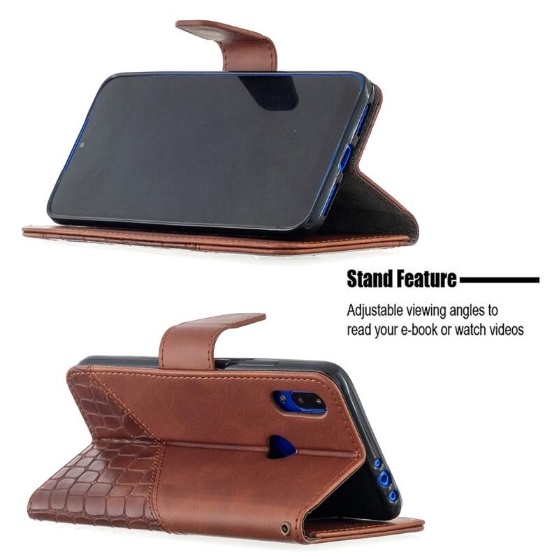 Θήκη για Xiaomi Redmi 7, οριζόντια, με υφή κροκόδειλου, από δερματίνη PU, σε χρώμα που ταιριάζει, με πορτοφόλι, βάση & θήκες για κάρτες (Μαύρο)