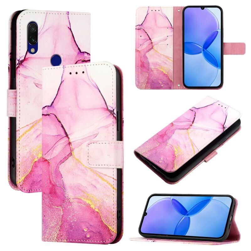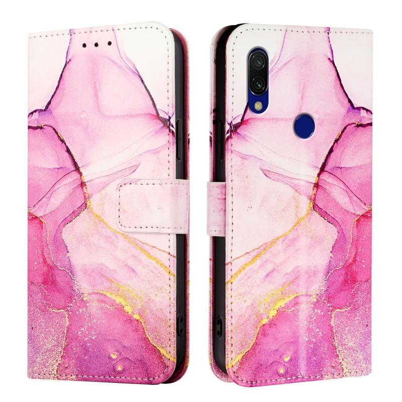 For Xiaomi Redmi 7 PT003 Marble Pattern Flip Leather Phone Case(Pink Purple Gold)
