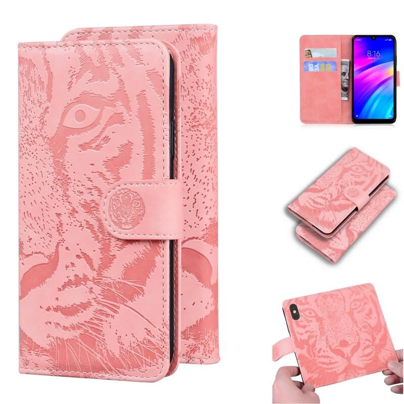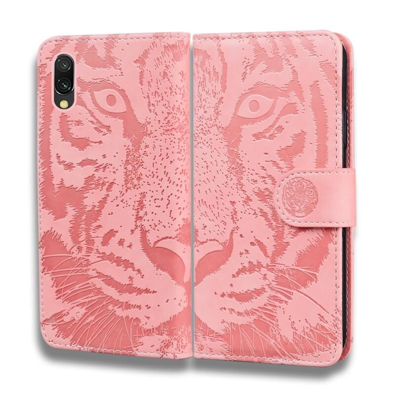 Για Xiaomi Redmi 7 / Y3 (Ινδική Έκδοση) Θήκη Δέρματος Οριζόντιας Αναδίπλωσης με ανάγλυφο μοτίβο τίγρης, με βάση & υποδοχές καρτών & πορτοφόλι (Κόκκινο)