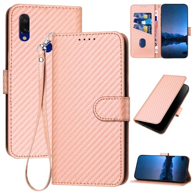 Για Xiaomi Redmi 7 YX0070 Carbon Fiber πόρπη δερμάτινη θήκη τηλεφώνου με κορδόνι (ρόζ)