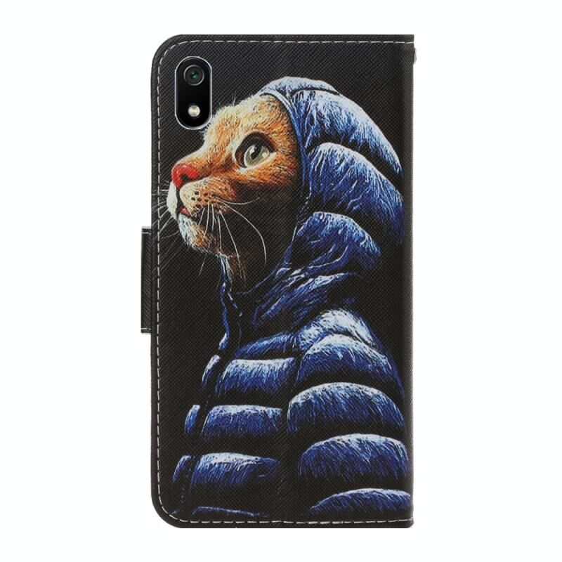 Θήκη για Xiaomi Redmi 7A 3D με έγχρωμο σχέδιο, οριζόντια αναδιπλούμενη από δερματίνη PU με βάση στήριξης & θήκες για κάρτες & πορτοφόλι (Γάτα με πουπουλένιο μπουφάν)