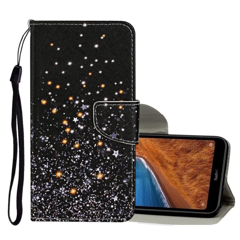 Θήκη δέρματος οριζόντιας αναδίπλωσης με σχέδια ζωγραφικής και χρώματα για Xiaomi Redmi 7A με βάση στήριξης & υποδοχές καρτών & πορτοφόλι (Μαύρο Αστέρι)