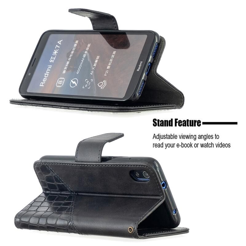 For Xiaomi Redmi 7A Matching Color Crocodile Texture Horizontal Flip PU Leather Case with Wallet & Holder & Card Slots(Black)