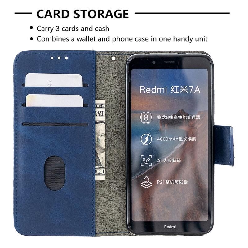 Θήκη για Xiaomi Redmi 7A, οριζόντια, αναδιπλούμενη, από δερματίνη PU με υφή κροκόδειλου, σε ταιριαστό χρώμα, με πορτοφόλι, βάση στήριξης & θήκες για κάρτες (Μαύρο)