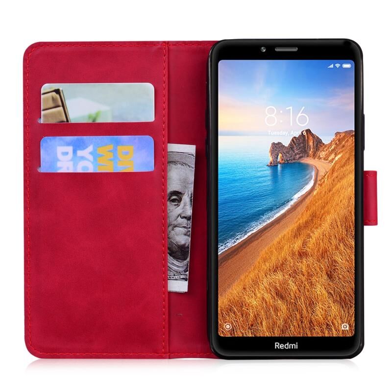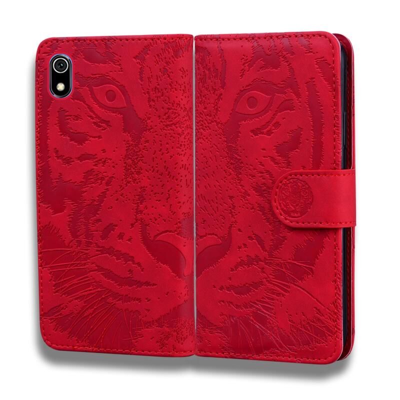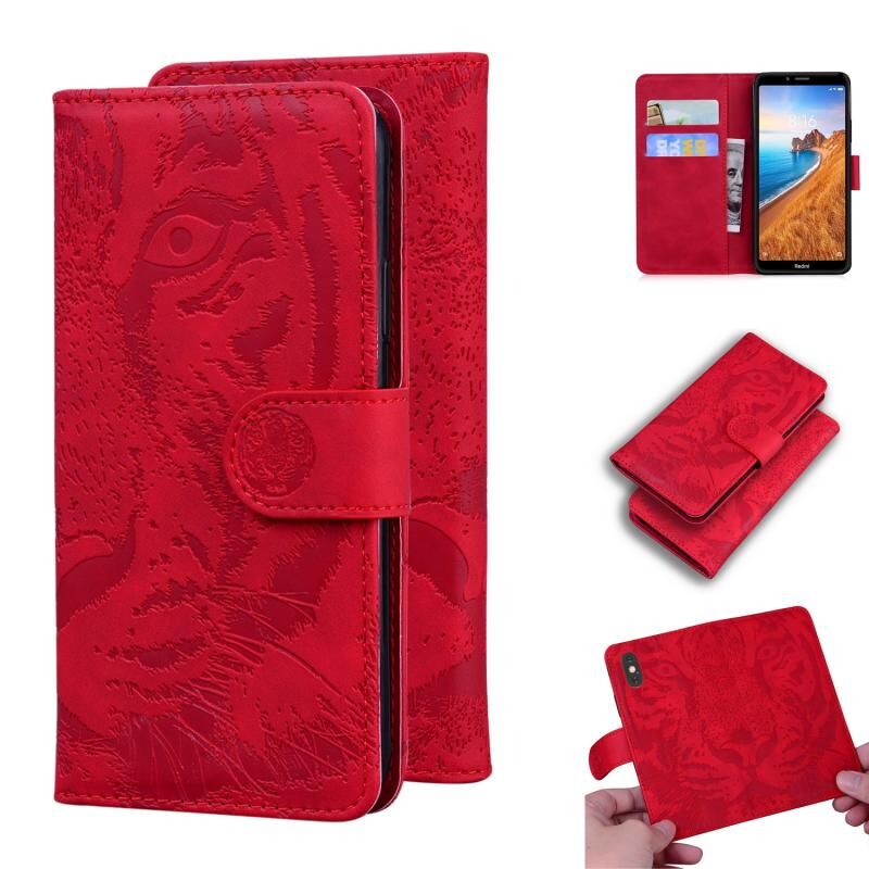 Θήκη δέρματος οριζόντιας αναδίπλωσης με ανάγλυφο σχέδιο τίγρης για Xiaomi Redmi 7A με βάση στήριξης & υποδοχές καρτών & πορτοφόλι (Ροζ)