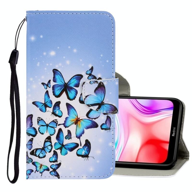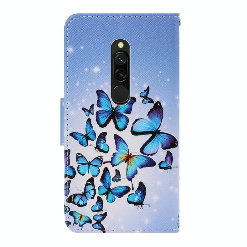 Θήκη για Xiaomi Redmi 8 3D με έγχρωμο σχέδιο, οριζόντια αναδίπλωση από δερματίνη PU με βάση & υποδοχές καρτών & πορτοφόλι (Πολλαπλές Πεταλούδες)