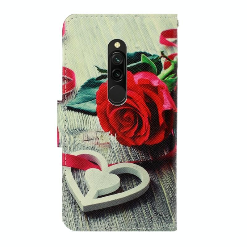 Θήκη για Xiaomi Redmi 8 3D με έγχρωμο σχέδιο, οριζόντια αναδίπλωση από δερματίνη PU με βάση & υποδοχές καρτών & πορτοφόλι (Κόκκινο Στόμα Γάτας)