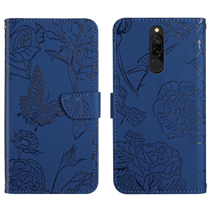 Θήκη τηλεφώνου από δέρμα με ανάγλυφο σχέδιο πεταλούδας και παιώνιας για Xiaomi Bluemi 8 / 8A (Κόκκινο)