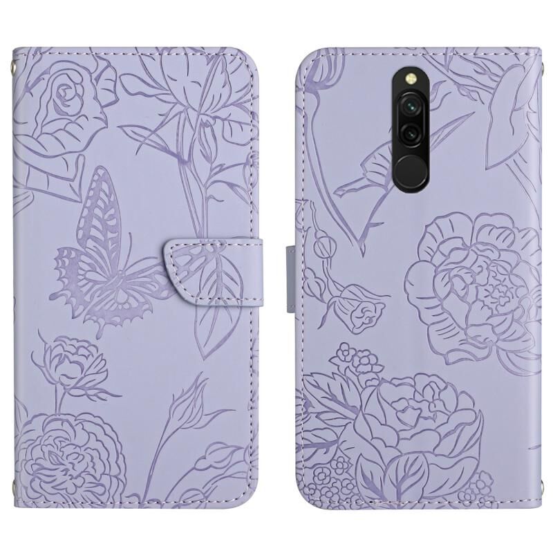 Θήκη τηλεφώνου από δέρμα με ανάγλυφο σχέδιο πεταλούδας και παιώνιας για Xiaomi Purplemi 8 / 8A (Κόκκινο)