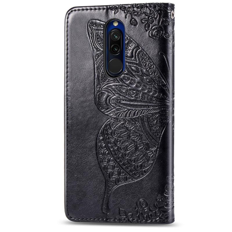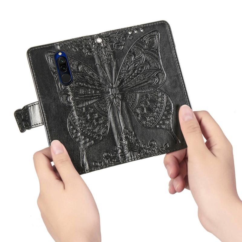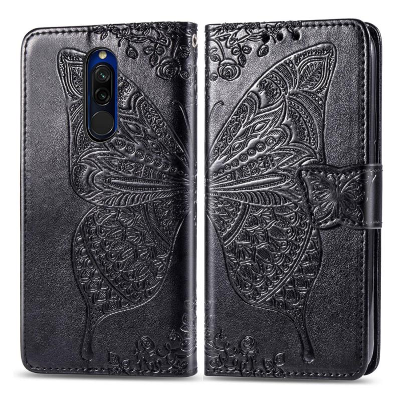 For Xiaomi Redmi 8 Butterfly Love Flower Embossed Horizontal Flip Leather Case with Bracket Lanyard Card Slot Wallet(Black)