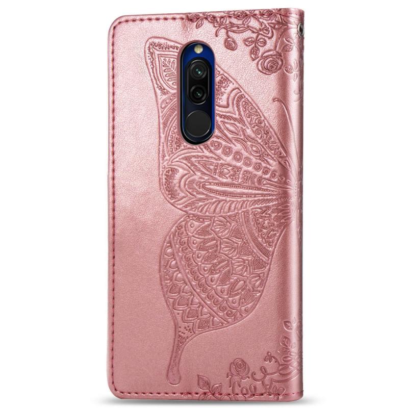 For Xiaomi Redmi 8 Butterfly Love Flower Embossed Horizontal Flip Leather Case with Bracket Lanyard Card Slot Wallet(Rose Gold)
