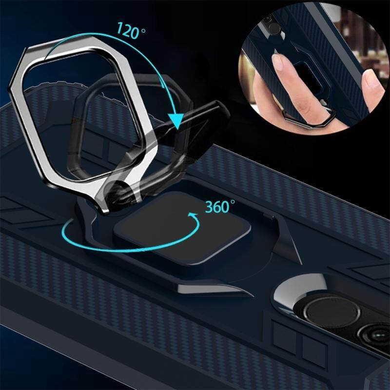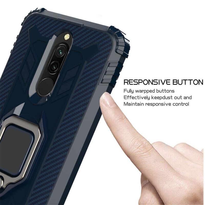 Για Xiaomi Redmi 8 Carbon Fiber Προστατευτική θήκη με 360 μοίρες περιστρεφόμενο δαχτυλίδι κάτοχος (μπλε)