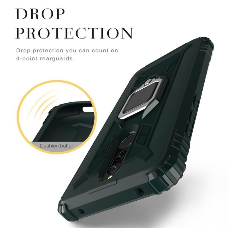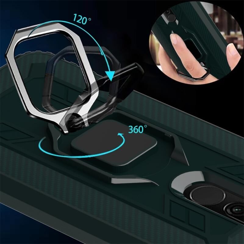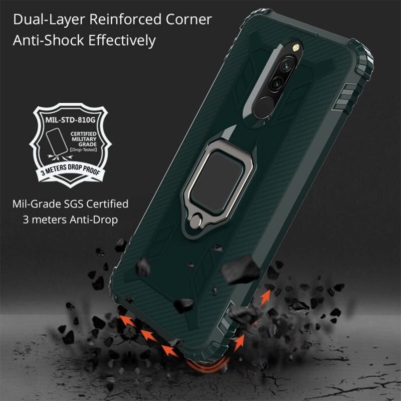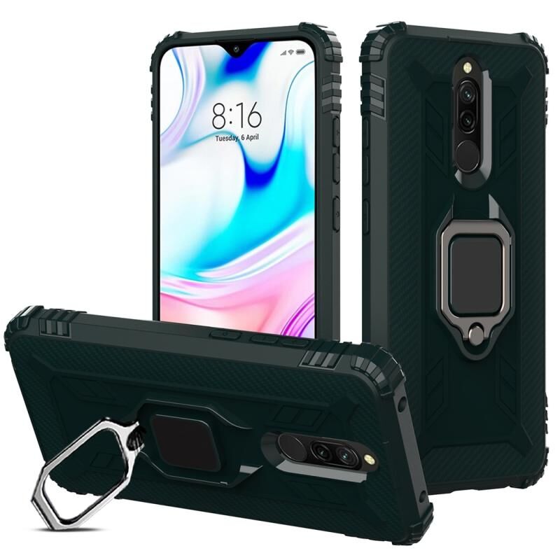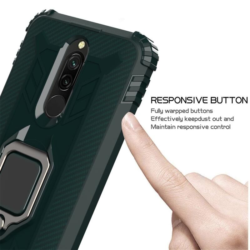 Για Xiaomi Redmi 8 Carbon Fiber Προστατευτική θήκη με 360 μοίρες περιστρεφόμενο δαχτυλίδι κάτοχος (πράσινο)
