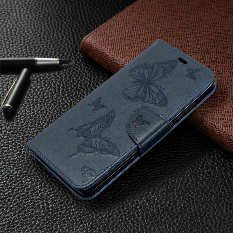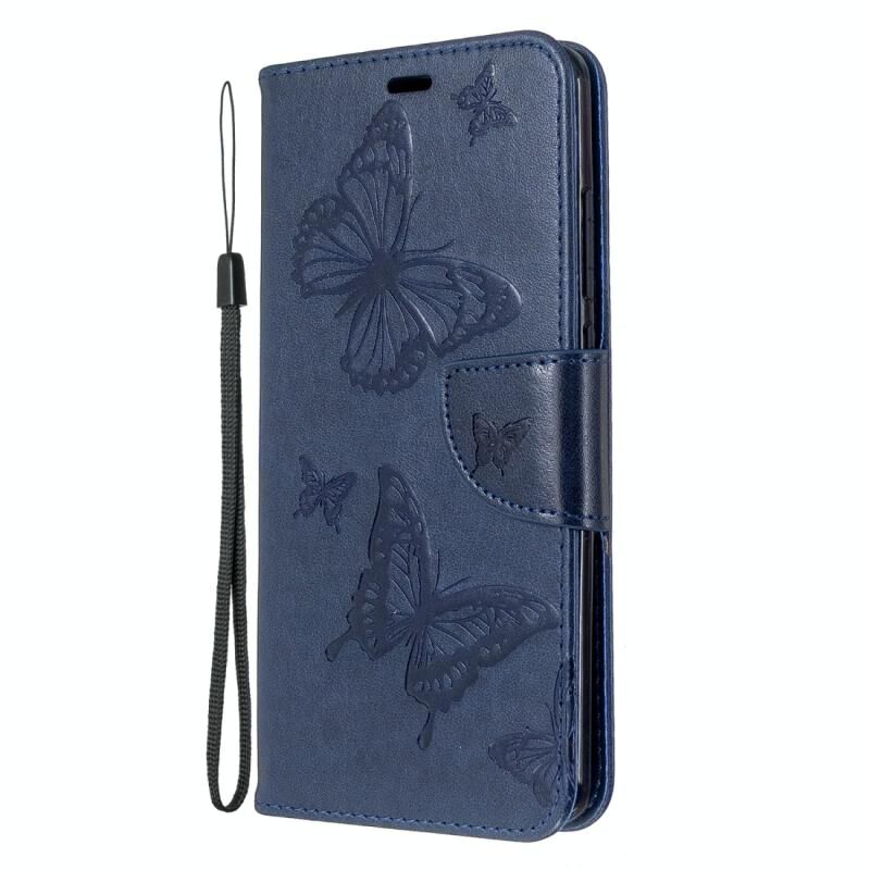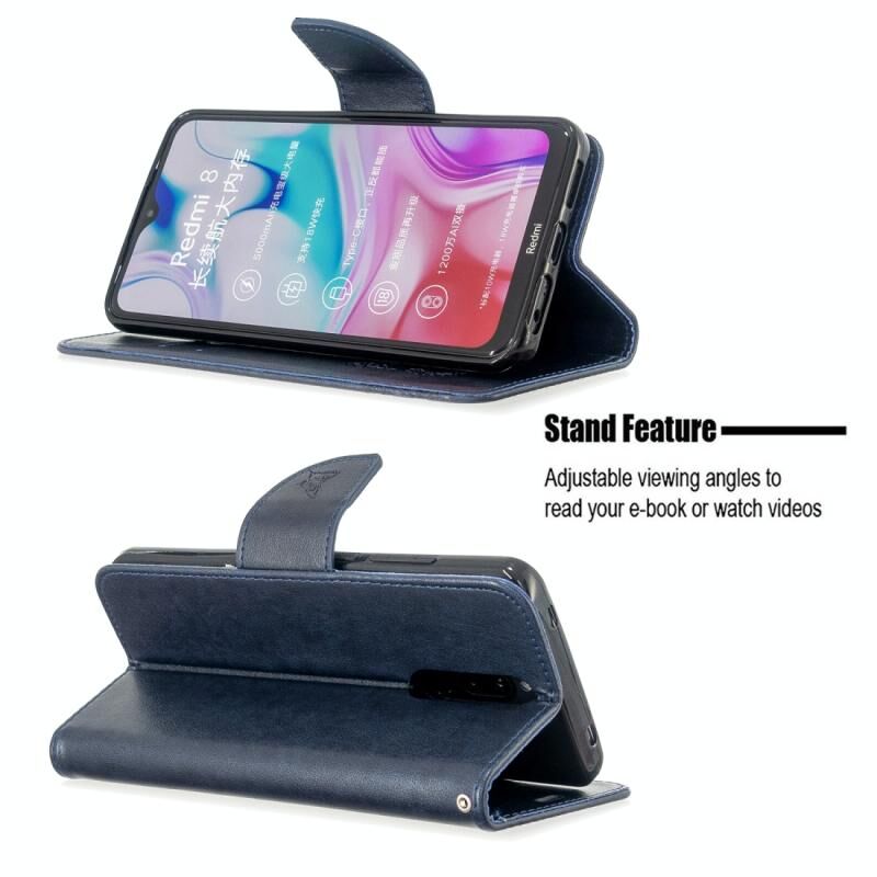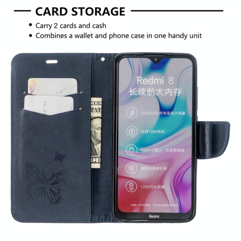 Θήκη για Xiaomi Redmi 8, με ανάγλυφο σχέδιο δύο πεταλούδων, οριζόντια, από δερματίνη PU με βάση στήριξης, θήκη για κάρτες, πορτοφόλι & λουρί (Γκρι)
