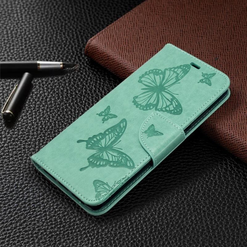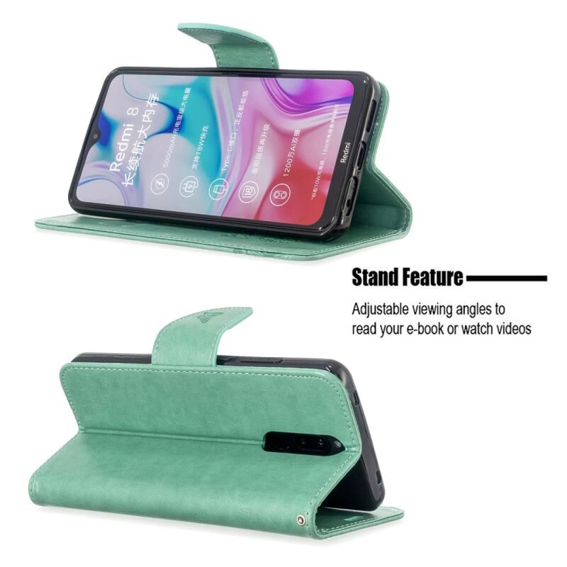 Θήκη για Xiaomi Redmi 8, με ανάγλυφο σχέδιο δύο πεταλούδων, οριζόντια, από δερματίνη PU με βάση στήριξης, θήκη για κάρτες, πορτοφόλι & λουρί (Γκρι)