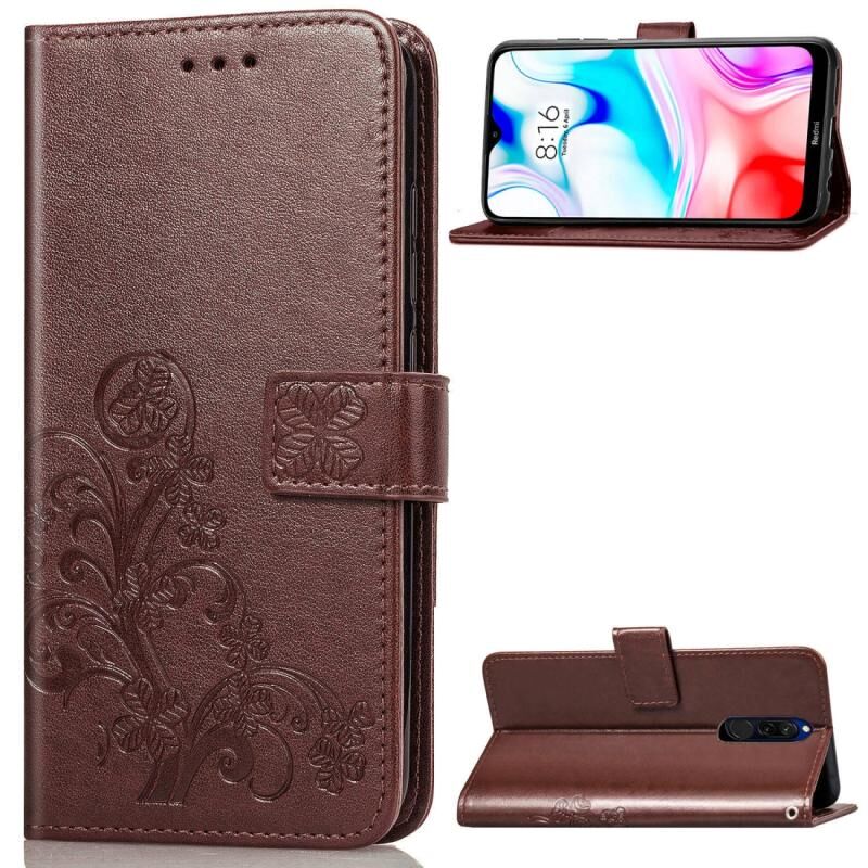 Για Xiaomi Redmi 8 Θήκη Προστασίας Δερμάτινη για Κινητό με Κούμπωμα Τριφυλλιού, Ρυθμιζόμενο Λουρί, Θήκη Καρτών, Πορτοφόλι & Λειτουργία Στήριξης (Καφέ)