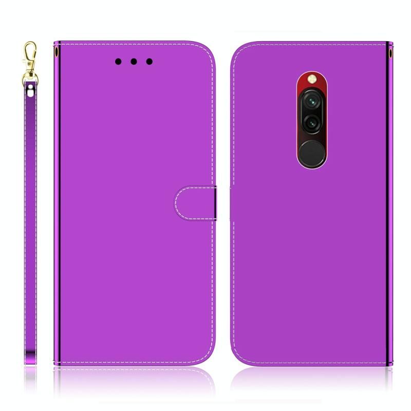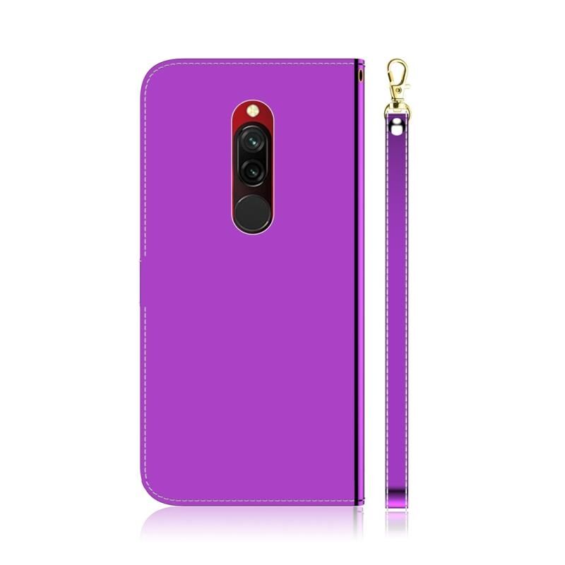 Για Xiaomi Redmi 8 Imitated Mirror Surface Οριζόντια Flip δερμάτινη θήκη με θήκη & υποδοχές για κάρτες & πορτοφόλι & κορδόνι (μωβ)