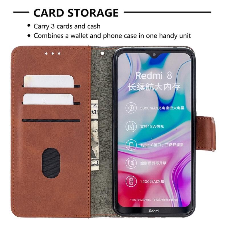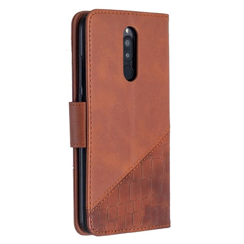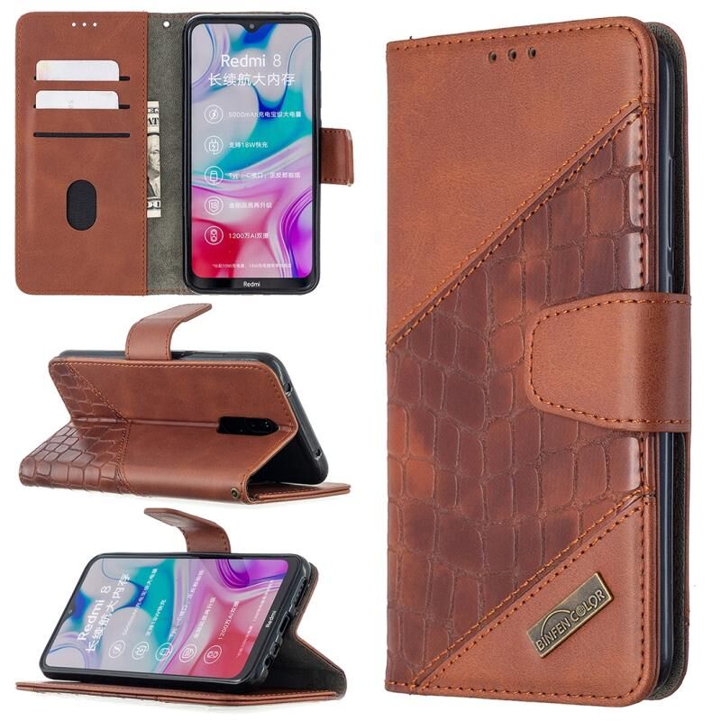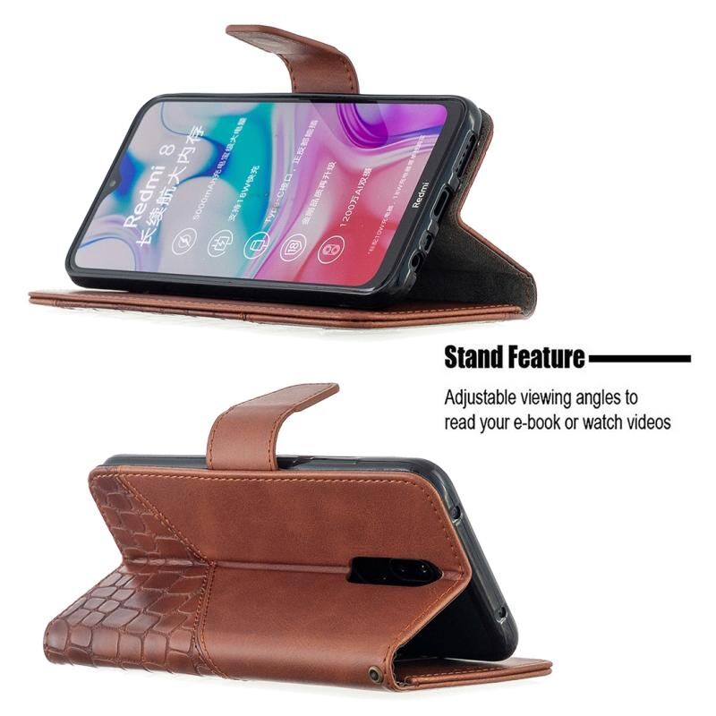 Θήκη για Xiaomi Redmi 8, με υφή κροκόδειλου, οριζόντια αναδίπλωση, από δερματίνη PU, σε χρώμα που ταιριάζει, με πορτοφόλι, βάση & θήκες για κάρτες (Μαύρο)