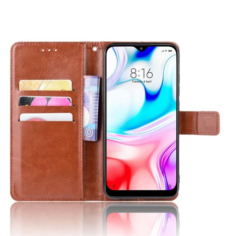 Για Xiaomi Redmi 8 Ρετρό Crazy Horse Υφή οριζόντια Flip δερμάτινη θήκη με θήκη & υποδοχές καρτών & πλαίσιο φωτογραφιών (καφέ)