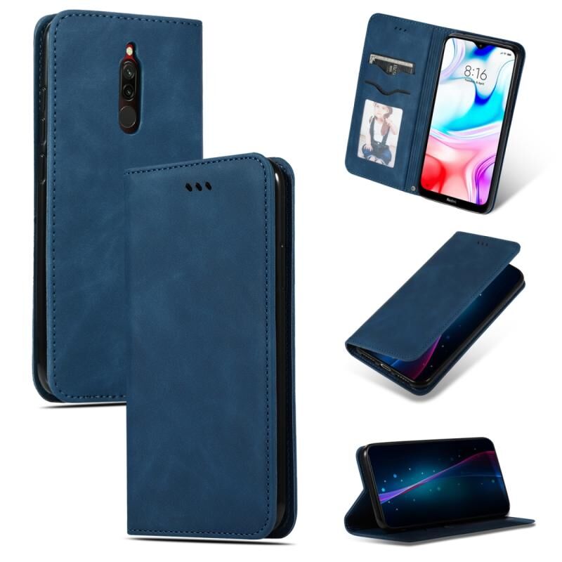 Για Xiaomi Redmi 8 Ρετρό δέρμα αίσθηση Business μαγνητική οριζόντια Flip δερμάτινη θήκη (Navy Blue)