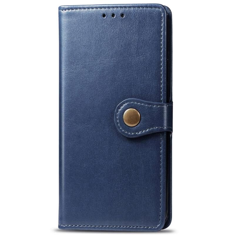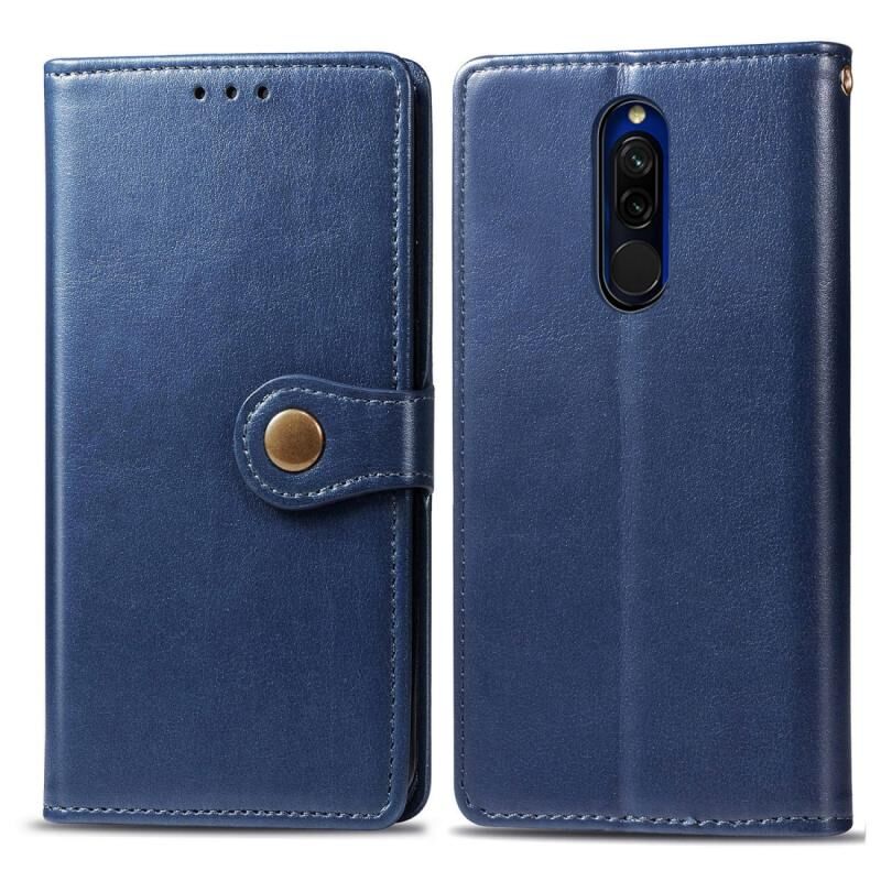 Για Xiaomi Redmi 8 Ρετρό αμιγές χρώμα δερμάτινη θήκη τηλεφώνου πόρπη με κορδόνι & πλαίσιο φωτογραφιών & υποδοχή κάρτας & πορτοφόλι & λειτουργία Stand (μπλε)