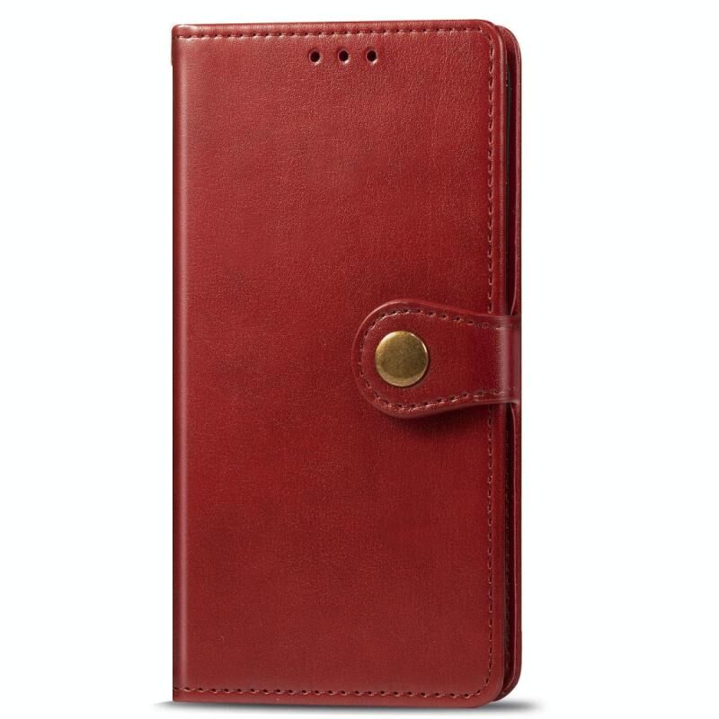 Για Xiaomi Redmi 8 Ρετρό αμιγές χρώμα δερμάτινη θήκη τηλεφώνου πόρπη με κορδόνι & πλαίσιο φωτογραφιών & υποδοχή κάρτας & πορτοφόλι & λειτουργία Stand (κόκκινο)