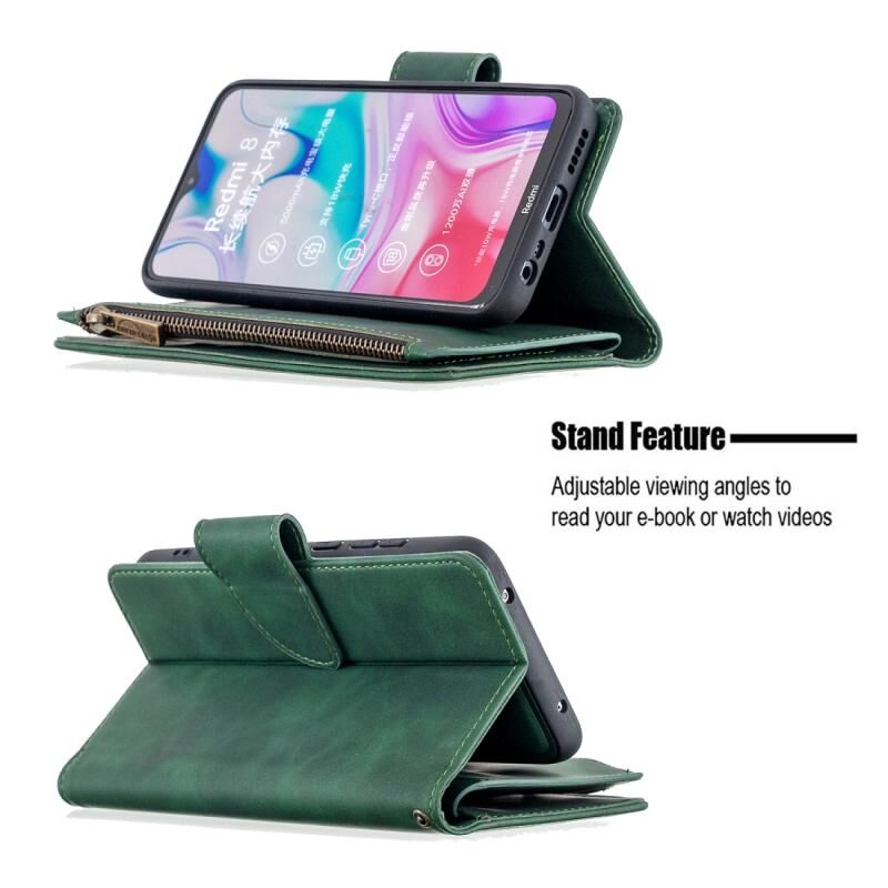 Για Xiaomi Redmi 8 Skin Feel Αποσπώμενο μαγνητικό φερμουάρ Οριζόντια Flip PU δερμάτινη θήκη με υποδοχές πολλαπλών καρτών & κάτοχος & πορτοφόλι & πλαίσιο φωτογραφιών & κορδόνι (πράσινο)
