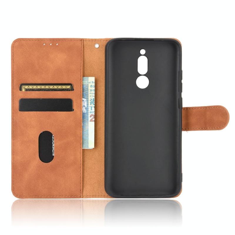 For Xiaomi Redmi 8 Solid Color Skin Feel Magnetic Buckle Horizontal Flip Calf Texture PU Leather Case with Holder & Card Slots & Wallet(Brown)