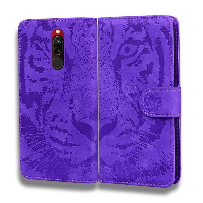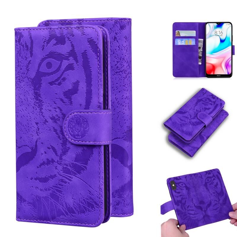 Θήκη δέρματος οριζόντιας αναδίπλωσης με ανάγλυφο σχέδιο τίγρης για Xiaomi Redmi 8 με βάση στήριξης & υποδοχές καρτών & πορτοφόλι (Μαύρο)