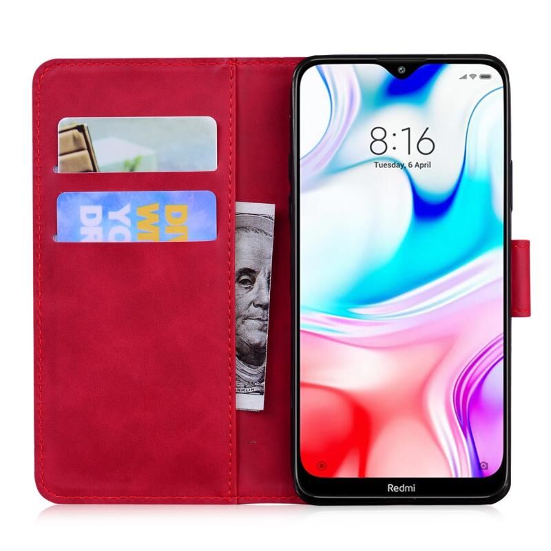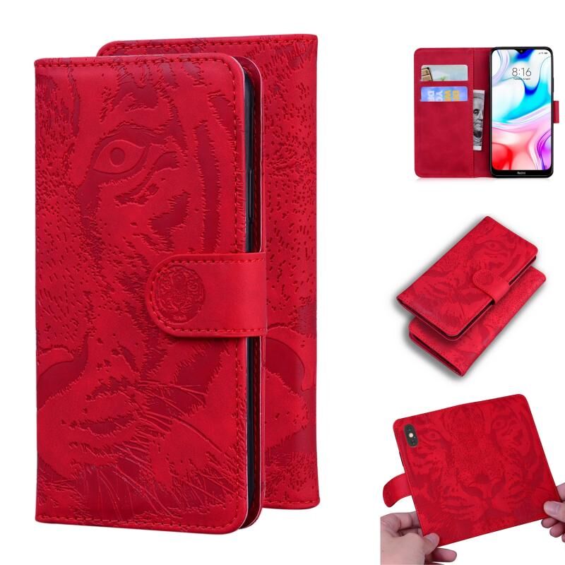Θήκη δέρματος οριζόντιας αναδίπλωσης με ανάγλυφο σχέδιο τίγρης για Xiaomi Redmi 8 με βάση στήριξης & υποδοχές καρτών & πορτοφόλι (Ροζ)